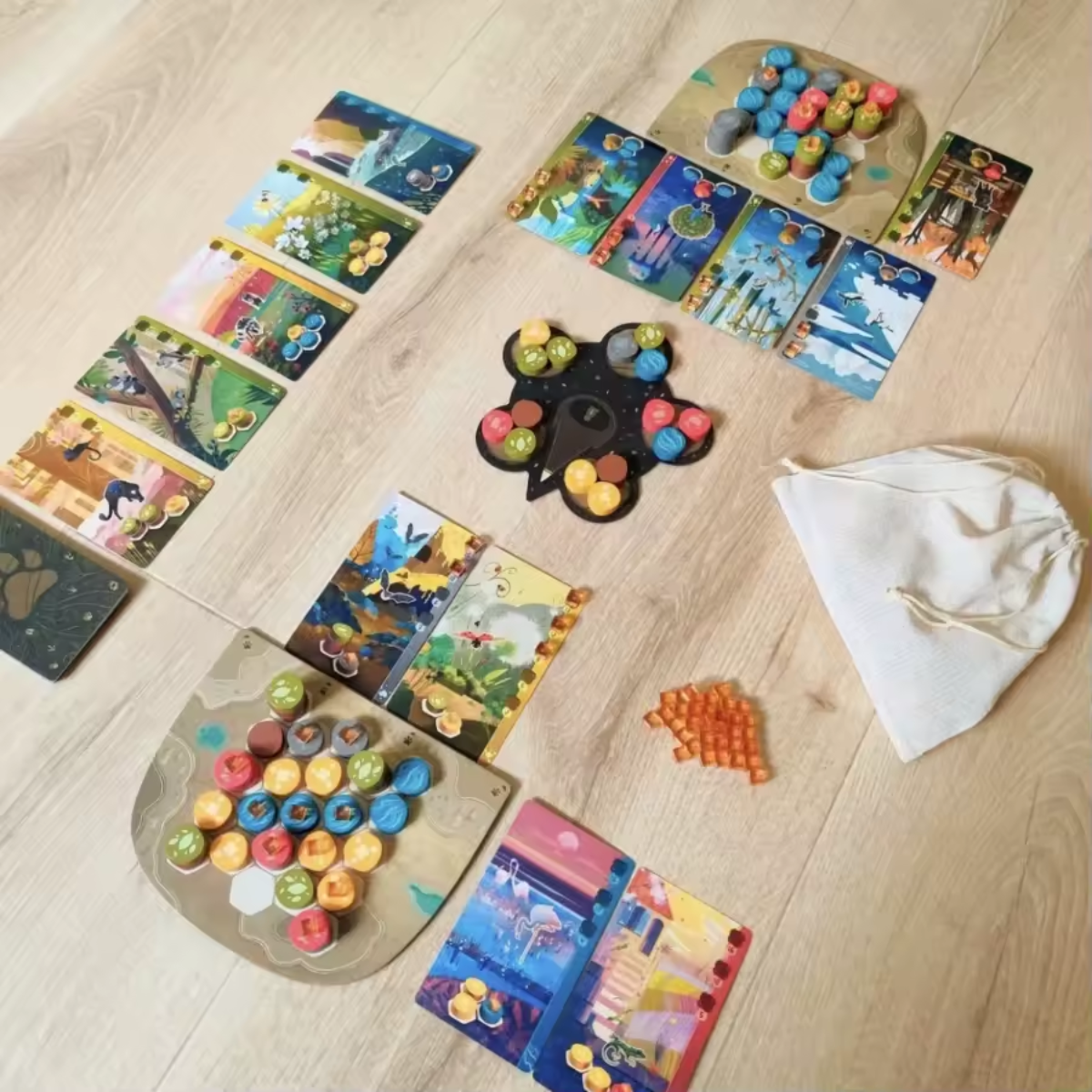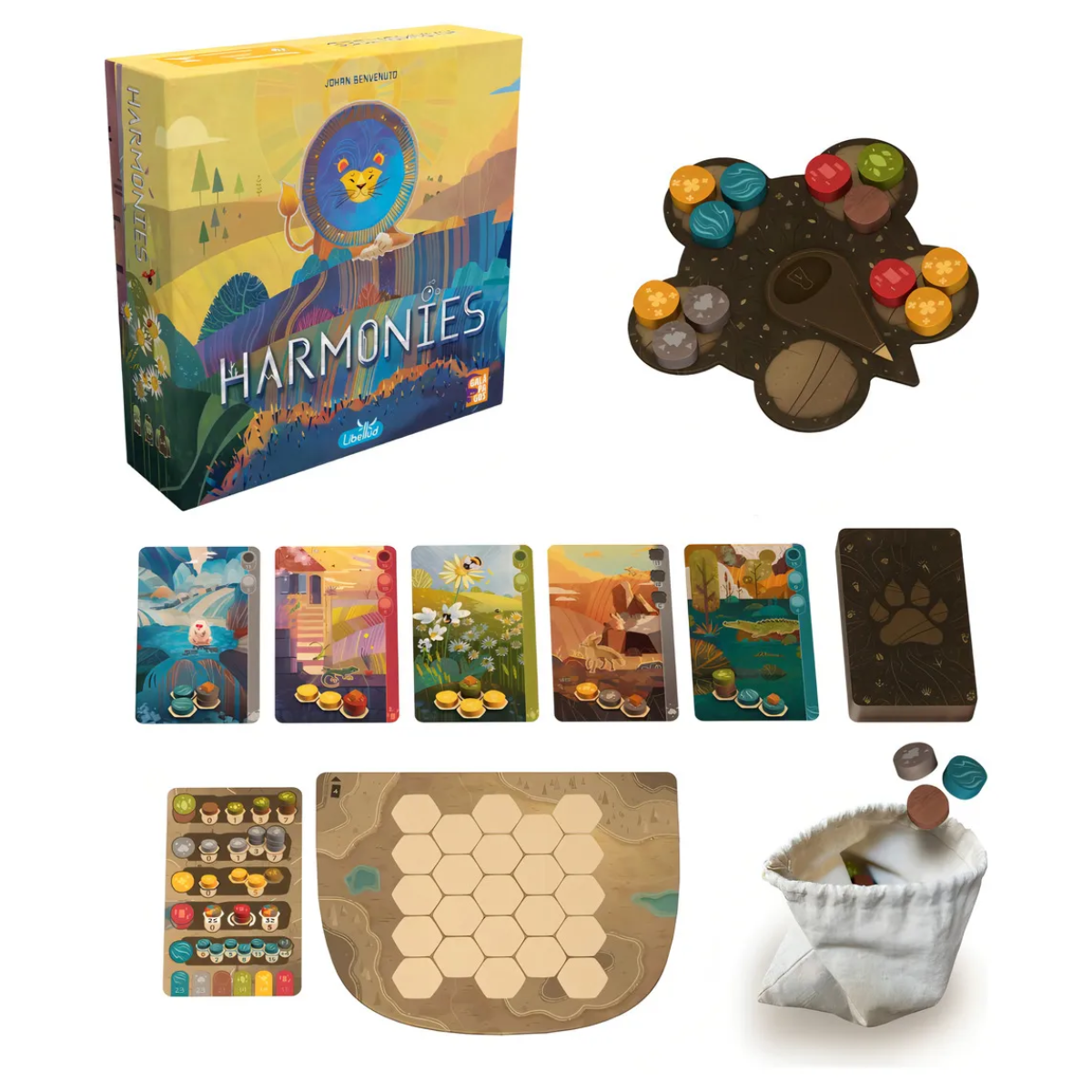 Harmonies é um jogo abstrato com temática de natureza, com regras simples mas com grande potencial estratégico.